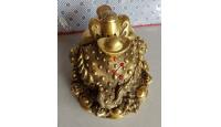 铜4《7寸八方纳财铜金蟾》底圆直径16cm,高14cm 460元 头顶八卦背顶金元宝金蟾、圆形坐底莲花,座下有八个小金蟾围绕,共九个金蟾。{查看详情}