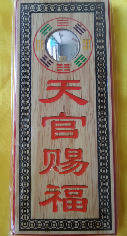 挂30《桃木彩绘八卦凸镜天官赐福化煞挂牌》挂扁高19cm, 宽8cm 开光价 69元