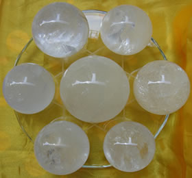 M46《白水晶透晶七星阵》(玻璃底盘15cm配约4cm天然白色水晶球)套 售价:327元/1套